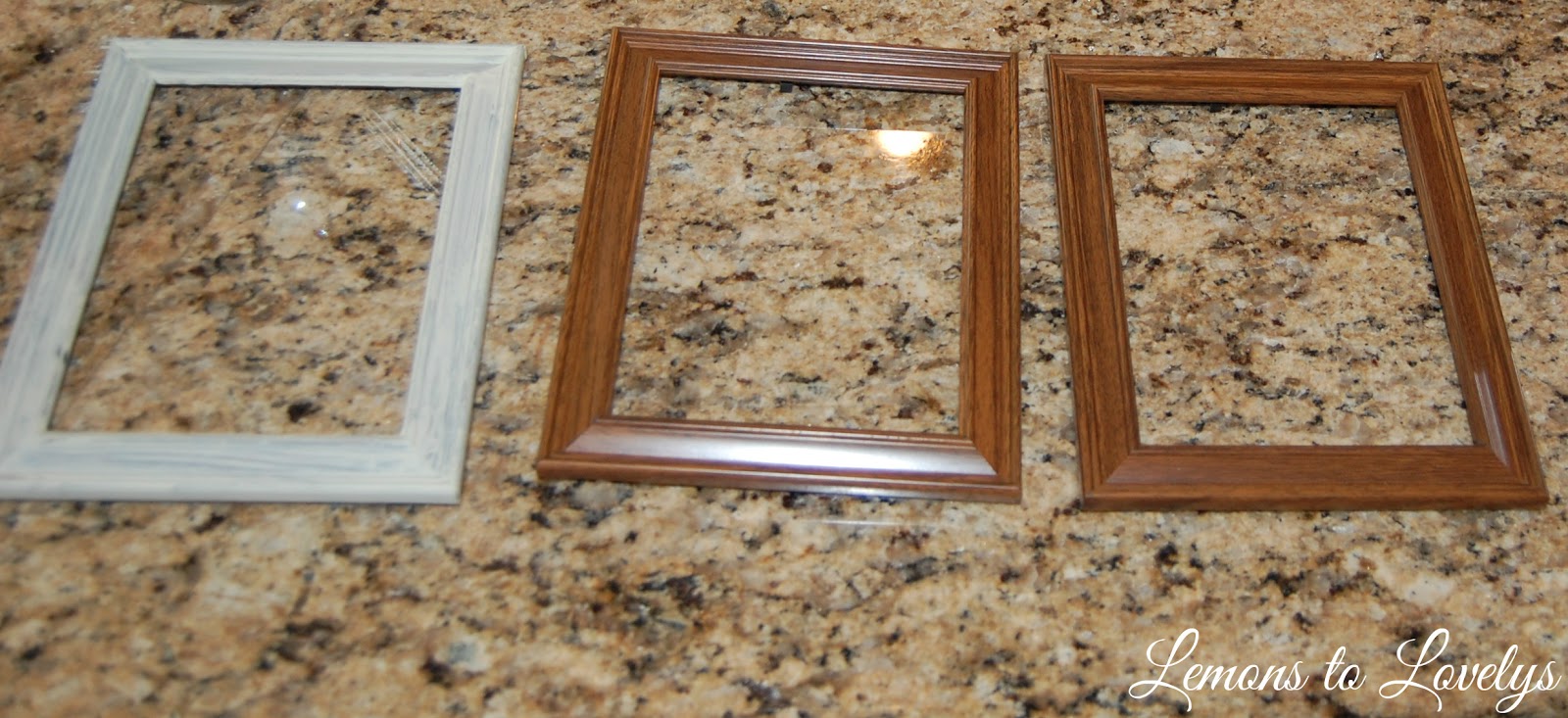 To ensure that the wall paint would stick to the frames, I started with 1 coat of Country Gray chalk paint by ASCP. (*sidenote-any color and/or brand of chalk paint would have worked, this is just what I had on hand leftover from another project.  Primer would have worked too)  After the chalk paint dried, I painted 2 coats of Revere Pewter over the top, letting each coat dry thoroughly in between…