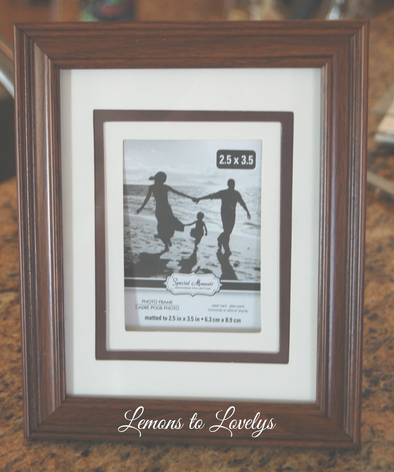 Then I removed the white matte that came with the frame, traced and cut down a piece of black card stock to fit the inside and wrote our names with chalk on each one.  Tada…