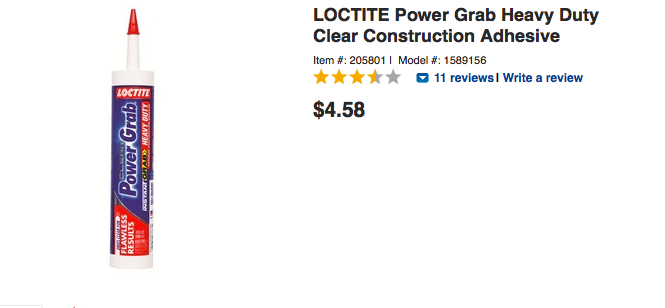 After the PL Power Grab glue cured, I removed the tension rod and went back to each nail and patched it with this paintable caulk…