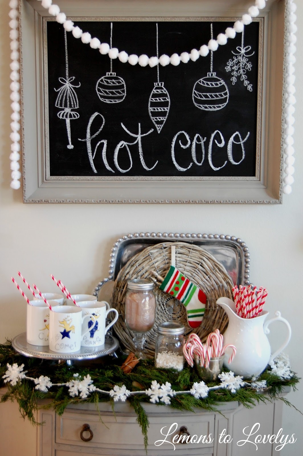 I’m so excited to share with you our new Hot Chocolate Station!!!  It’s probably my favorite part of our whole house this holiday season…