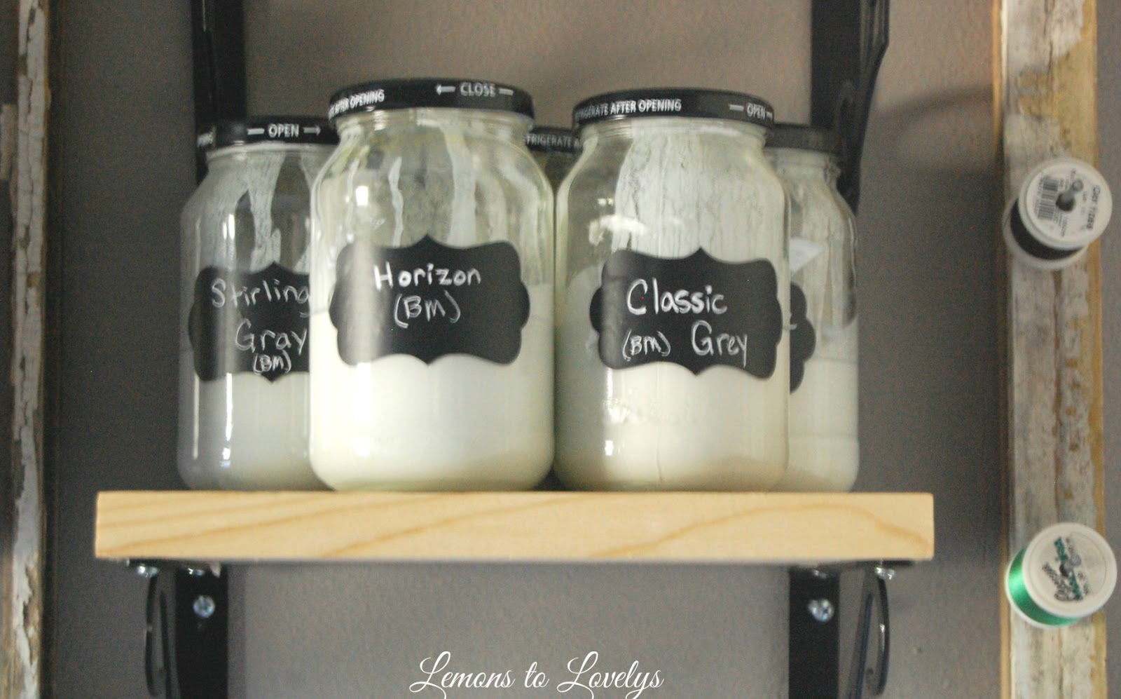 I label each jar with a peel and stick chalkboard label from Hobby Lobby .  Sometimes I’ll even write what I used the paint for so if I have to go back later and do touch ups, I can remember which color I used.