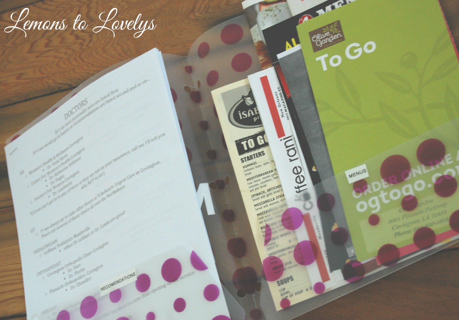 On the left is my list of recommendations and on the right side I put the to-go menus.