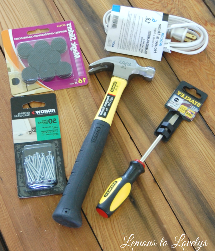 I purchased these moving necessities at Target for under $20.  They include a pack of nails, a hammer, a screw driver, an extension cord, and “moving buddies” (those little things you can put under furniture to help slide them across the floor and keep your floors from getting scratched)