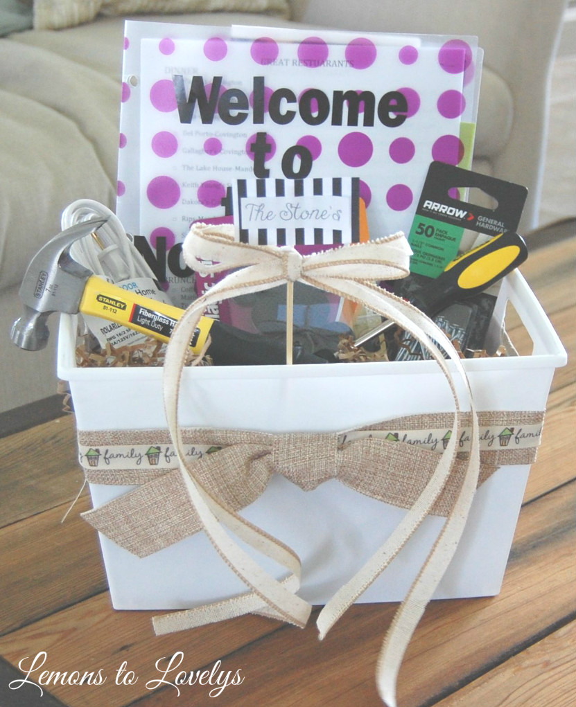 If you know someone who is moving, make them your own version of a DIY House Warming Gift and send me a picture of it!   Lemonstolovelys@gmail.com.  Don’t feel like you have to go out and buy all new stuff.  Dig in your ribbon drawer, extra office supplies, and containers you aren’t using!