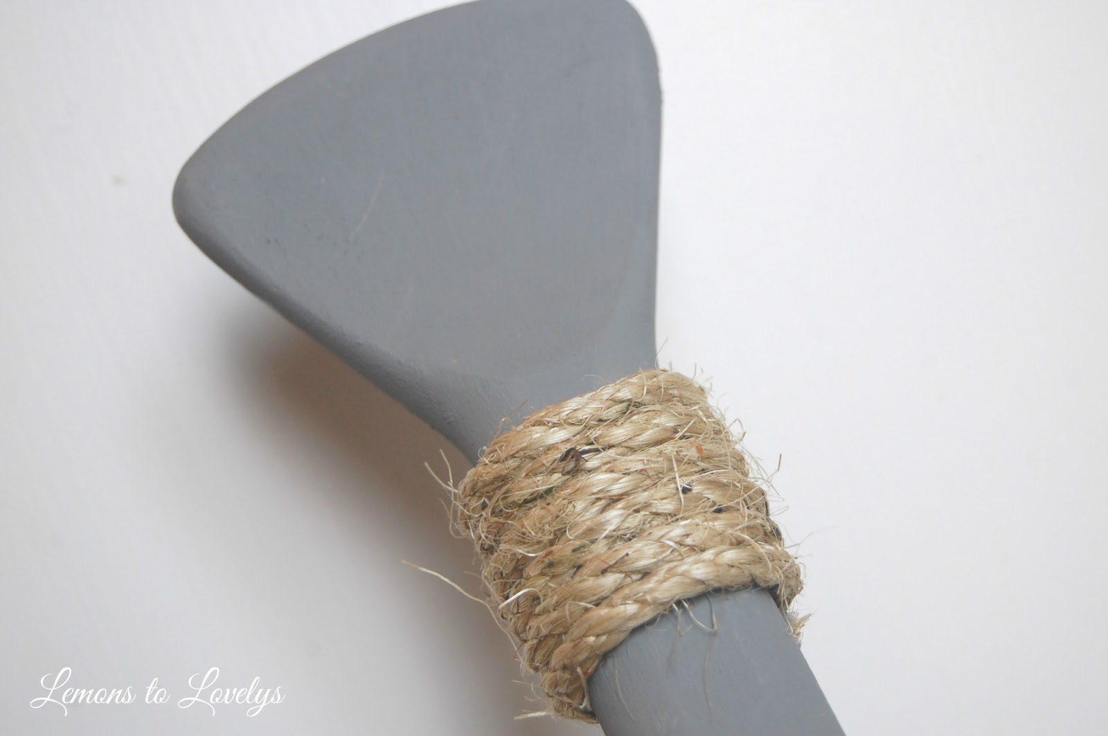 Then I decided that the paddle would look better if it was wrapped with sisal around the top and bottom. So I added more sisal to the very bottom of the stick in the same way. And the finished product looked like this…