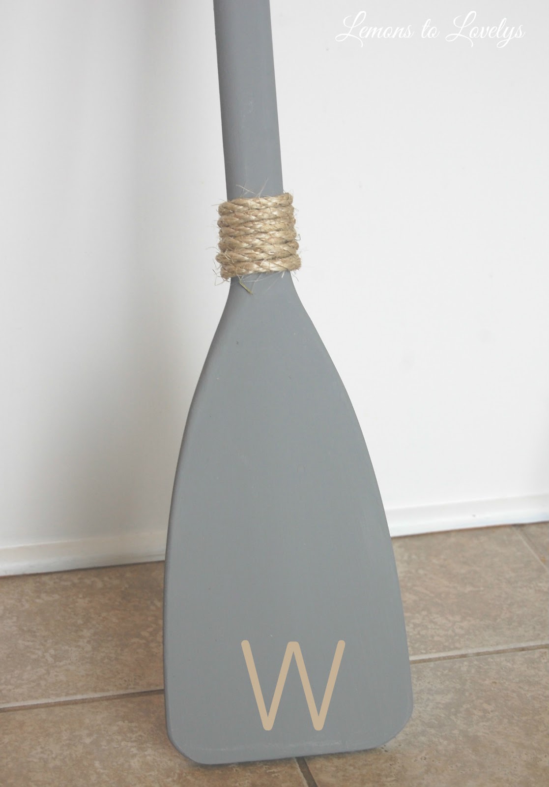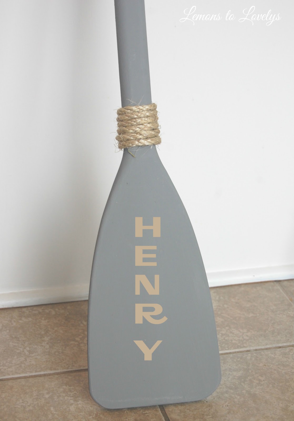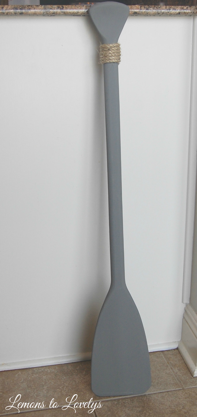 I love how this paddle turned out and feel that it adds that nautical element I was looking for without being too “baby” or “little kid”. Also it only cost me $13 because I had left over chalk paint from another project and I now have extra sisal to play around with!