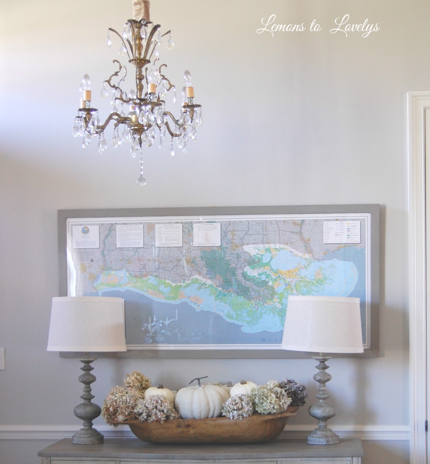 faux pumpkins-Hobby Lobby painted with Country Gray by ASCP