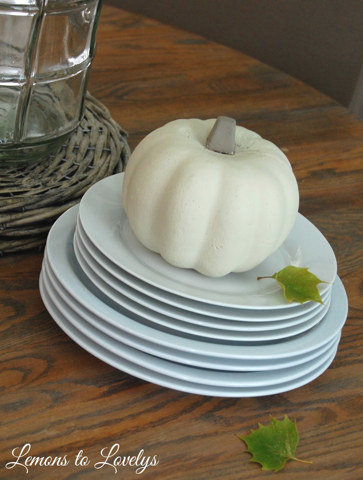 | table-Junk Junkies (details here) chairs-World Market side table-hand-me-down painted (see details here) glass jar-Hobby Lobby wicker chargers-Stone Creek Club & Spa Gift Shop (see details here) urn-Hobby Lobby pumpkins-Dollar Tree painted with Country Gray and CoCo by ASCP pheasant feathers-Hobby Lobby plates-Pottery Barn chalkboard print-Dear Lillie chalkboard & frame-old mirror painted with chalkboard paint & ASCP in French Linen (tutorial coming soon) wall color-Revere Pewter by Benjamin Moore framed print-Paul Michael |