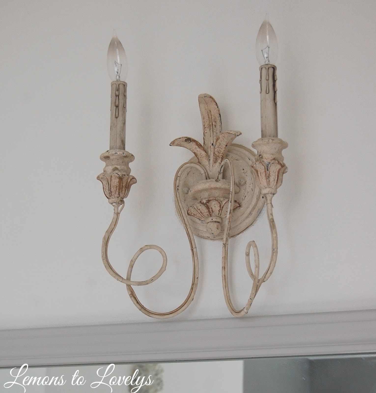 And for the final change to soften up this bathroom, my lovely husband switched out the light fixtures for me!!! I found these beautiful sconces at a discount lighting store here in town for cheap…