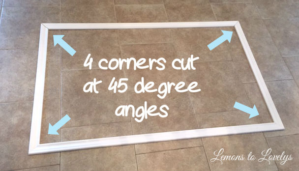 I followed this tutorial (minus the part about the “mirror clips” because our mirror didn’t have clips) using my own measurements and ended up with 4 pieces of trim to make a frame…