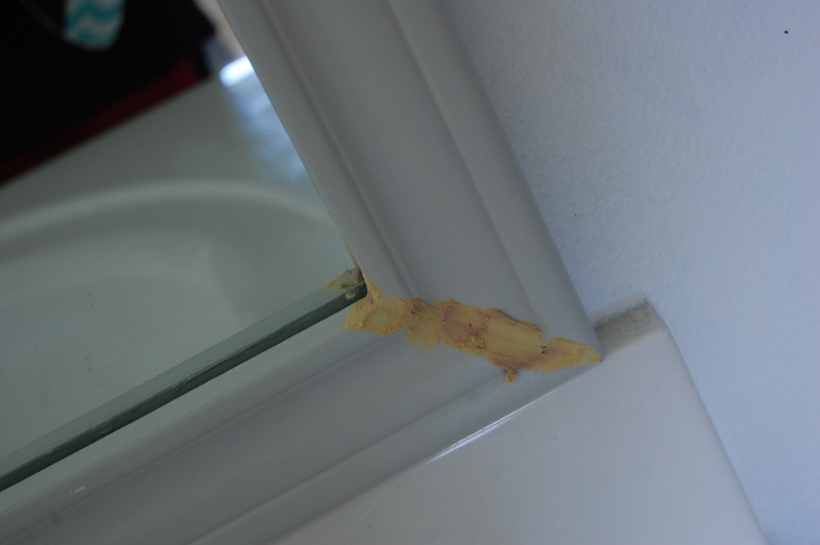 **sidenote- if you try this project, make sure to get 4 pieces of trim that are perfectly level and flat. Otherwise they will not stay on your mirror by just using glue.