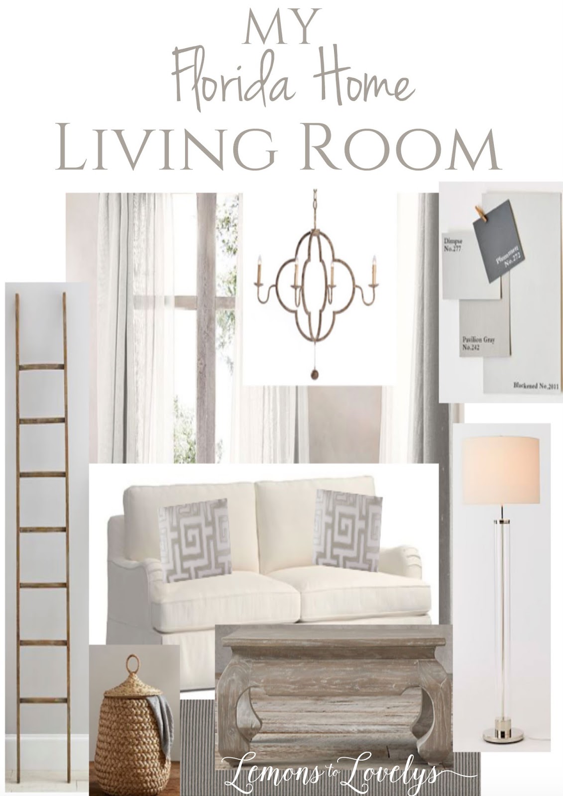 Everything in the living room of my Florida home would be cozy and soft. Nothing too fussy so that guests would feel comfortable enough to put their feet up and totally relax! This would be the room we would spend the most time in.