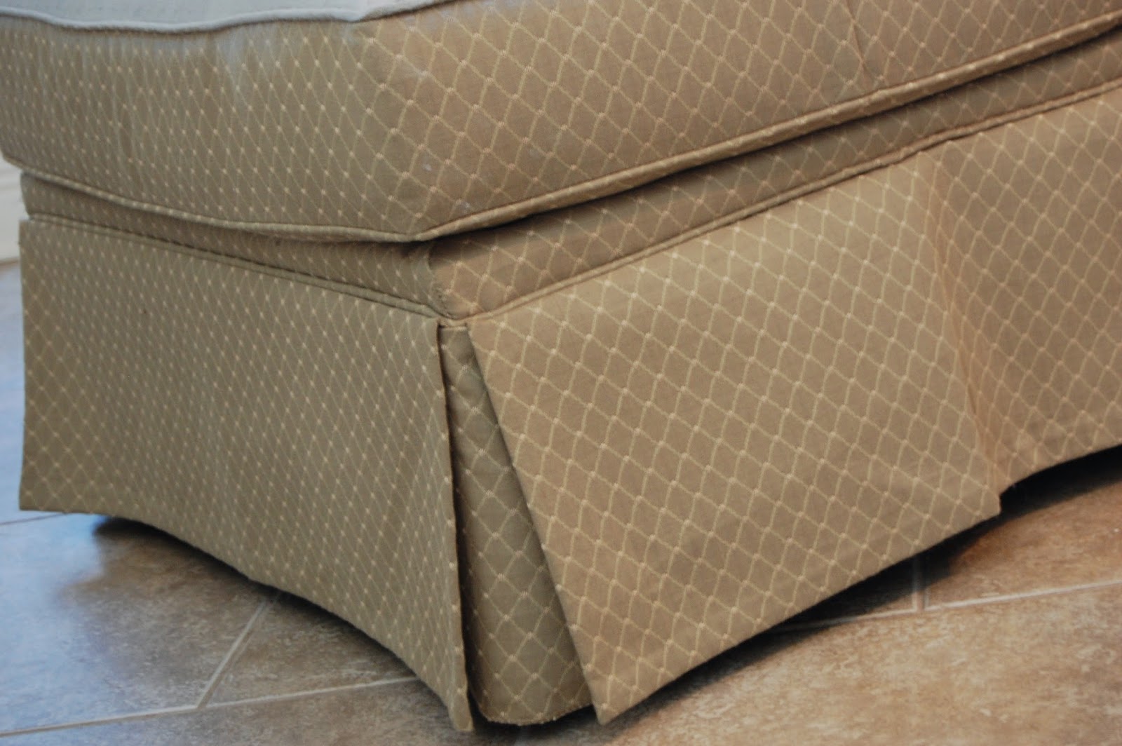 Here is a before picture of the ottoman I bought at my favorite consignment store, Patina Interiors for $40. It just so happens to also be a medium shade of green…
