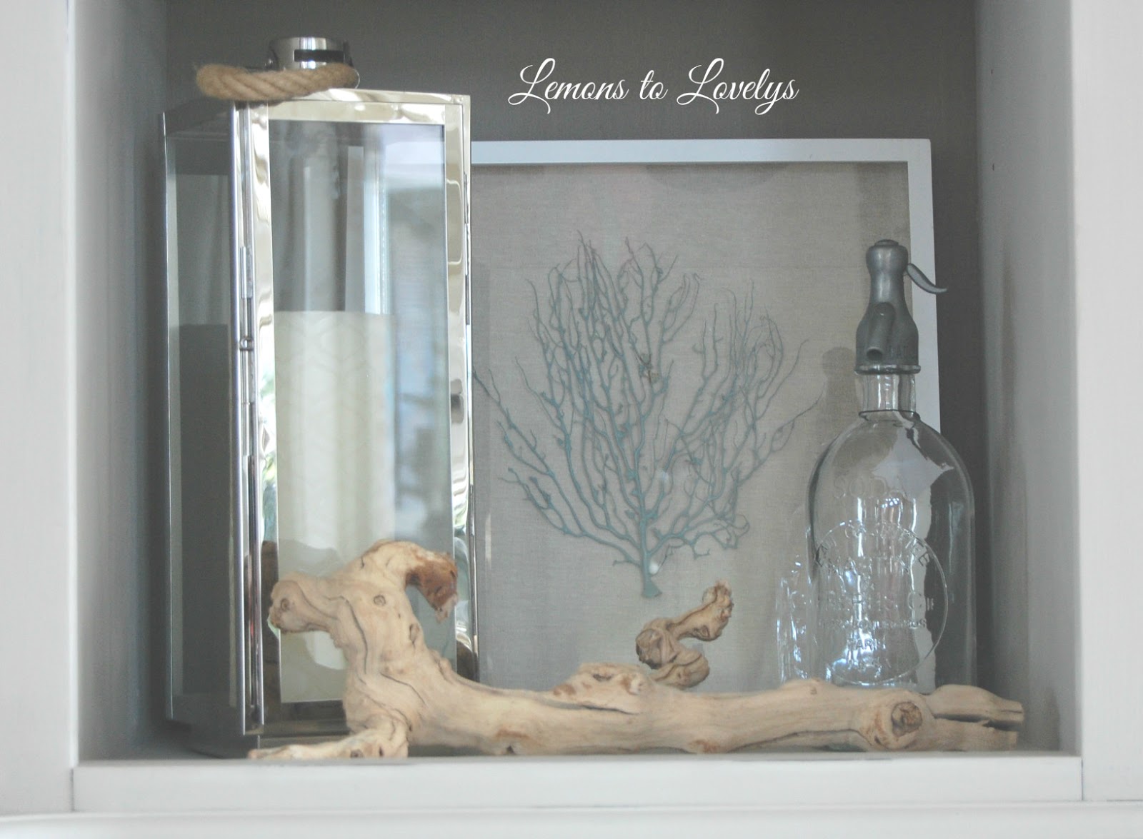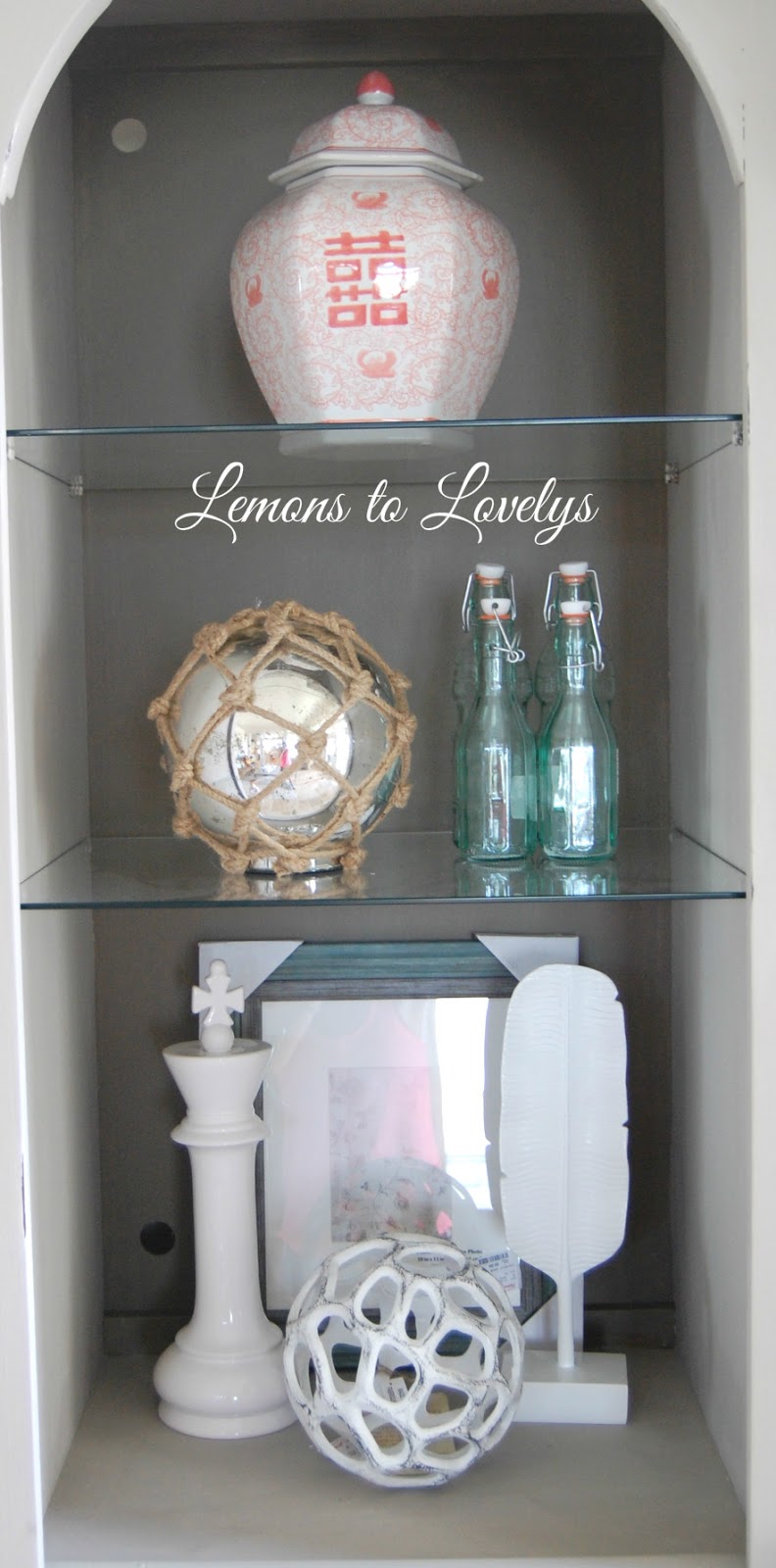 Here are some pictures of the shelves I styled for them.  ALL of the decor is from Homegoods...