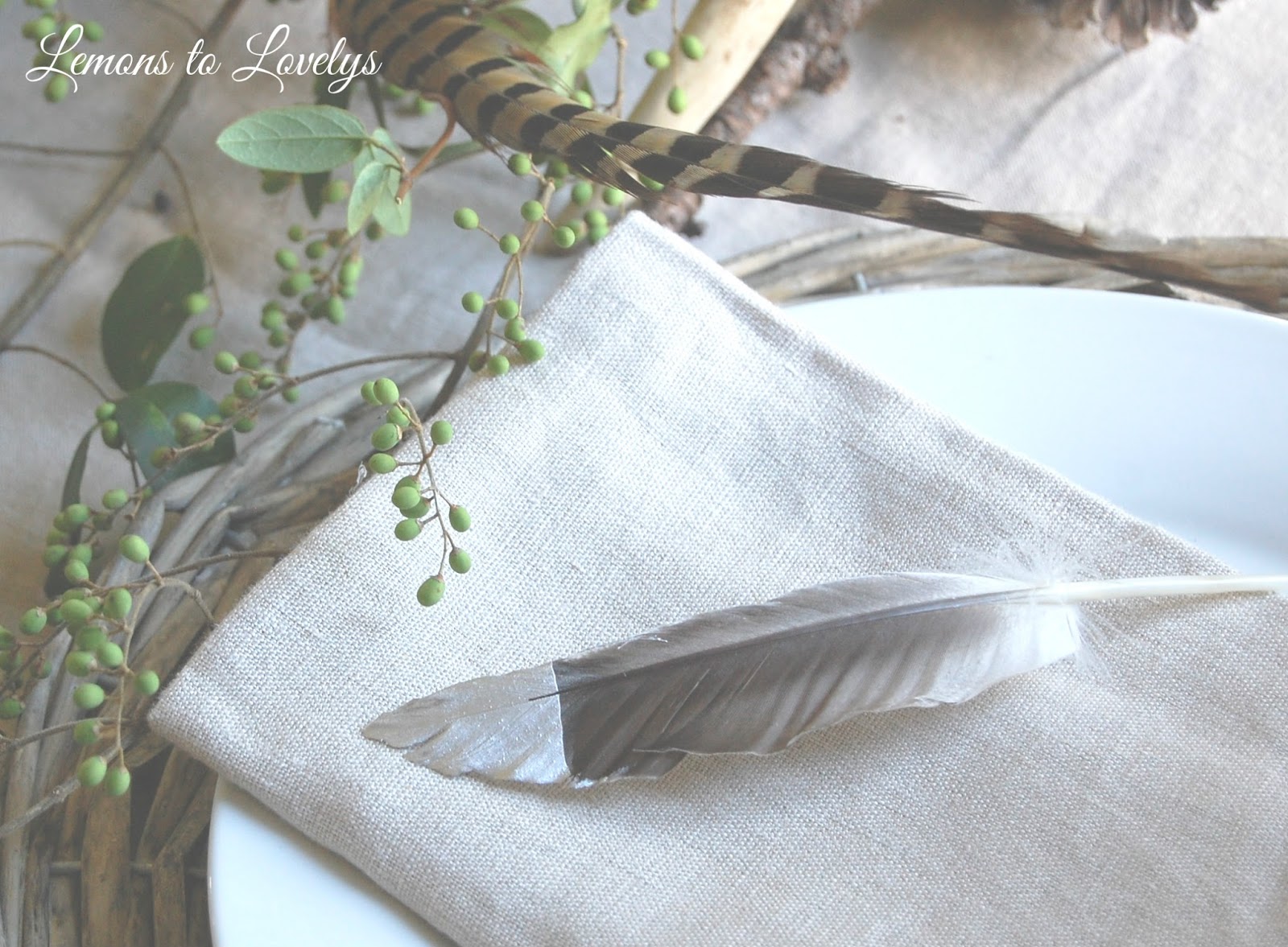 I haven’t decided what I’m going to do for place cards yet this year so for now I just placed a feather with a silver tip on each napkin….